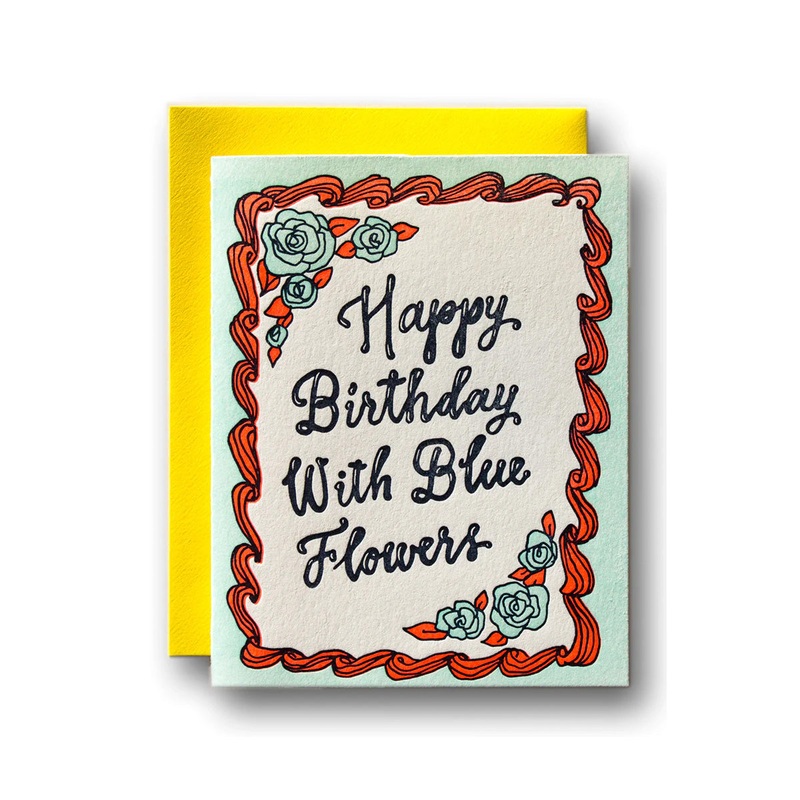 Happy Birthday With Blue Flowers, Ladyfingers Letterpress