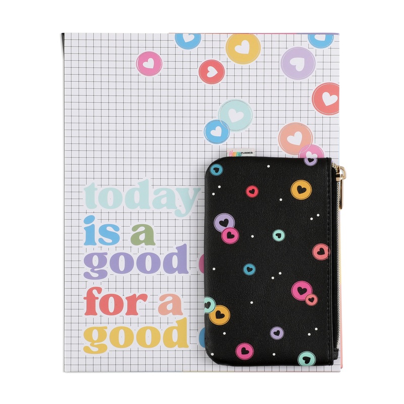 Today is a good day for a good day with this Happy Brights planner companion pack. It includes vision boards, a dry-erase dashboard, plastic envelopes, notepaper, a storage and pocket folder, and a zip pouch-all the best planneraccessories!Add these fun and functional accessories into your planner or notebook. This pack is for Classic sized Happy Planners, notebooks, and journals.
