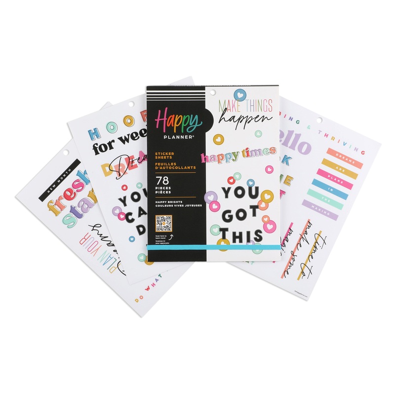 This Value Pack Sticker Book has 30 sheets with 78 themed stickers. Happy times are ahead with these Happy Planer themed stickers. It includes positive quotes to add joy to your planning process.This sticker book includes 30 sheets with 78 stickersIt inclu