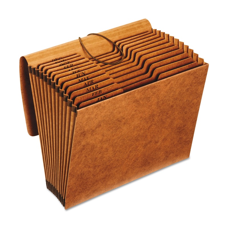 HEAVY-DUTY EXPANDING FILE, 12 SECTIONS, 1/3-CUT TAB, LETTER SIZE, REDROPE
