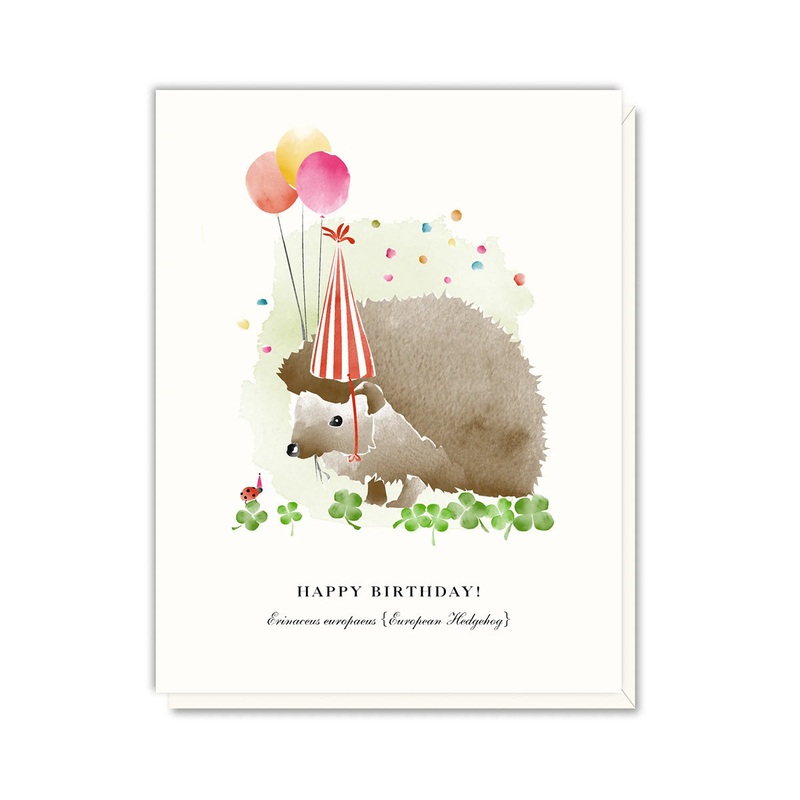 Send along sweet birthday wishes with this party-hat wearing hedgehog and ladybug pair.Size:4.25" x 5.5" foldedBlank inside.Printed on premium, cream, FSC certified, post-consumer recycled content paperenvelope included