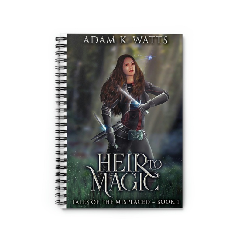 Shopping lists, school notes or poems – this 118 page spiral notebook with ruled line paper is a perfect companion in everyday life. The cover art in this spiral notebook is from Adam K. Watts’s book, Heir To Magic.