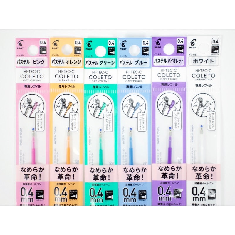 The Pilot Hi-Tec C Coleto is the 'build-your-own-multi' version of the Hi-Tec C! These refills fit any of the Hi-Tec C Coleto barrels, and they can be changed as often as you like. Select your favorites or get the complete bundle!Now available in pastel, f