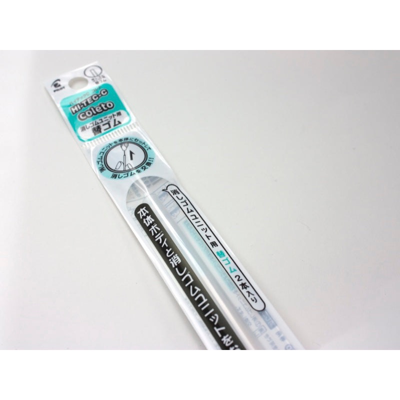 The Pilot Hi-Tec C Coleto is the 'build-your-own-multi' version of the Hi-Tec C! These are eraser refills for the eraser unit. Each packet contains 2 eraser sticks for the eraser unit.Two refills per packageEraser is 1.5 inches longFits Hi-Tec C Coleteo Er