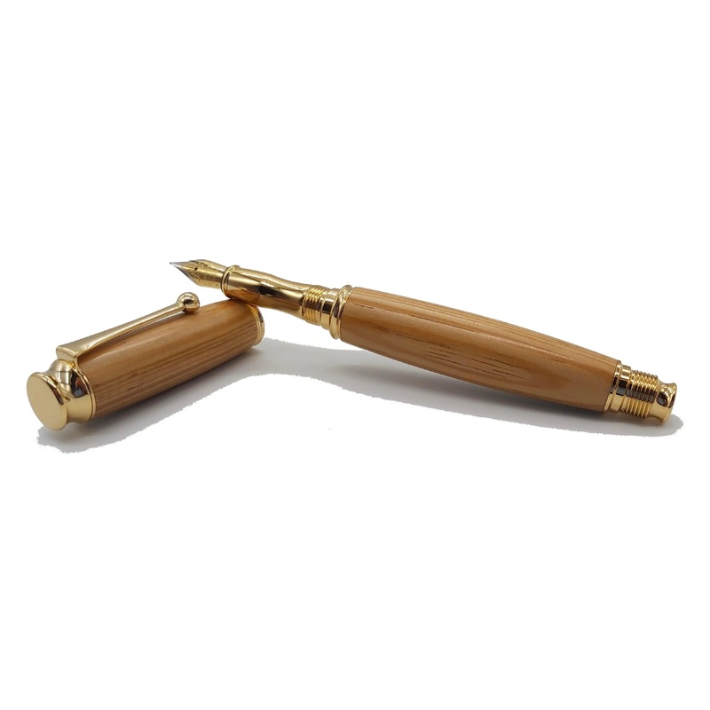 HMS Warrior pen This is a quality handmade wooden fountain pen dressed in HMS Warrior Pitch Pine Deck wood with Gold coloured fittings.The comfortable shape in the hand is complemented by the wonderful natural feel and warmth of the wood.Featuring a medium