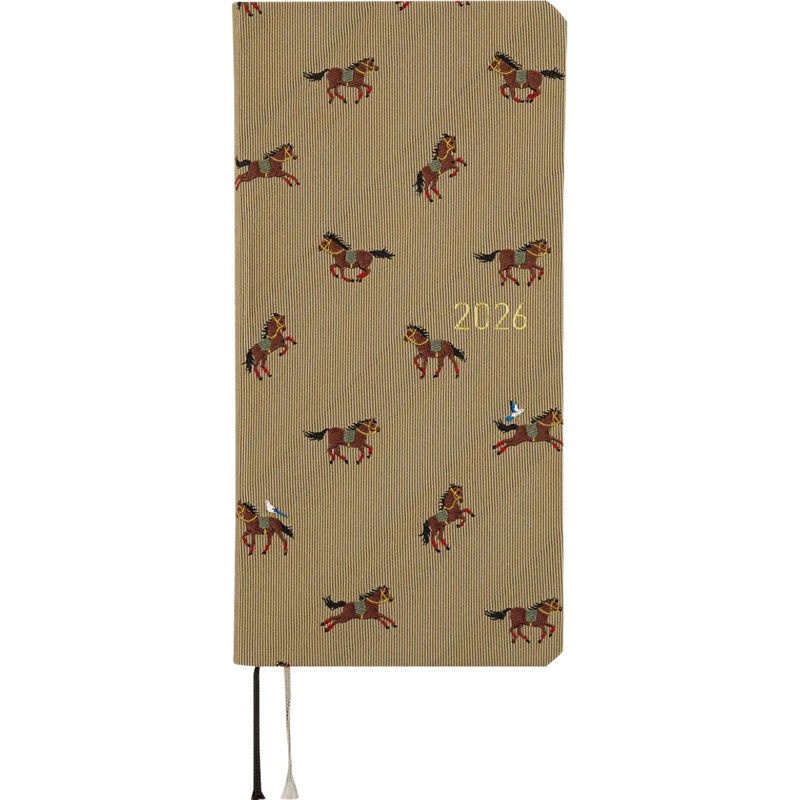 The Hobonichi Techo Weeks Bow & Tie: Galloping Horses brings a touch of refined elegance and spirited energy to your everyday planning. Part of the Bow & Tie series, this edition uses the same luxurious woven fabric found in neckties, offering a glossy finish, silky-smooth texture, and timeless sophistication.