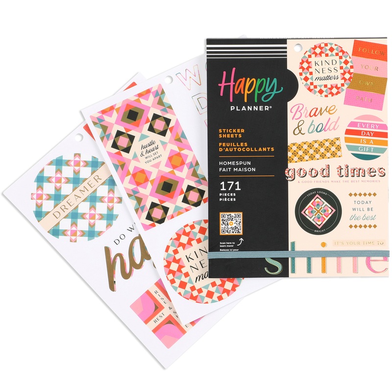 Good times and good friends make the best memories. Add a unique touch to the organization of your planner spread with this craft-inspired sticker book pack. The geometric patterns are reminiscent of traditional homespun quilts. The warm color palette adds a cozy feel to any page. Throwback to simpler times with this nostalgic sticker pack and follow your own path!