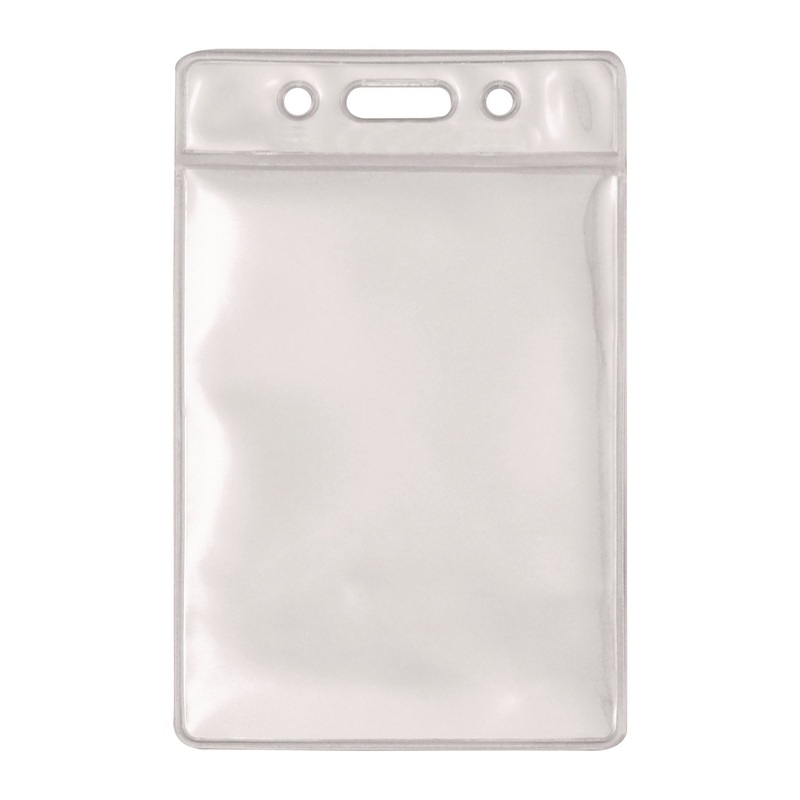 Constructed of durable clear vinyl and features three pop-out eyelets for compatibility with a variety of lanyards, badge reels and clips (sold separately). Fasten this ID badge holder to clothing, bags, and more to keep your hands free. Orientation: Verti