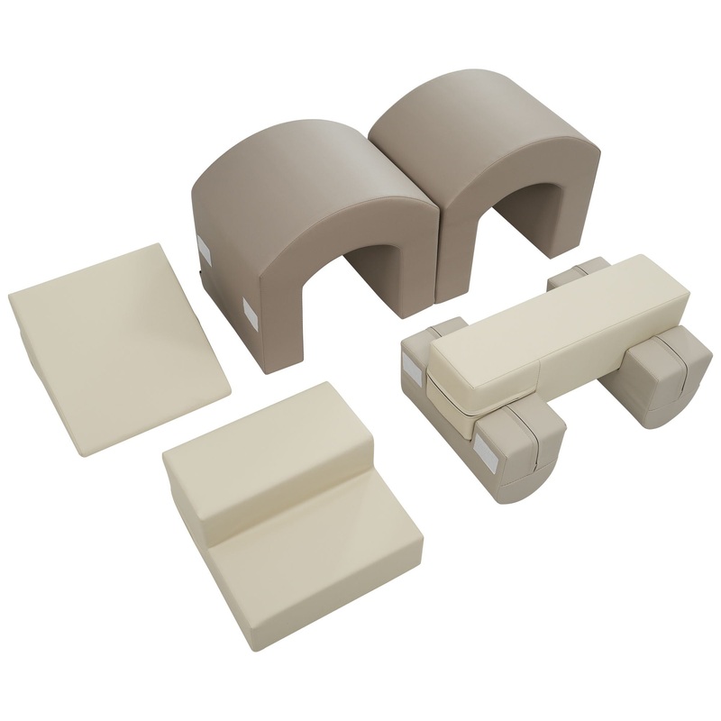 Indoor Soft Foam Climber Play Sets 7 In 1, Soft Play Equipment Climb And Crawl Playground For Toddlers, Kids Crawling And Climbing Active Play Structure – Coffee