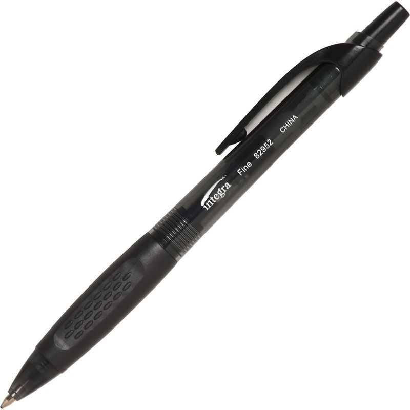 Retractable ballpoint pens feature a textured rubber grip and clip. Rubber grip and clicker match the ink color. Barrel is transparent but slightly tinted the same as the ink color. Ballpoint pens are nonrefillable.