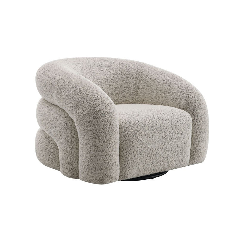 Swivel Design: The Irma Gray Boucle Chair features a 360-degree swivel mechanism, allowing for flexible movement and easy reorientation without needing to move the entire chair. Comfortable Upholstery: Upholstered in soft, textured boucle fabric, the chair
