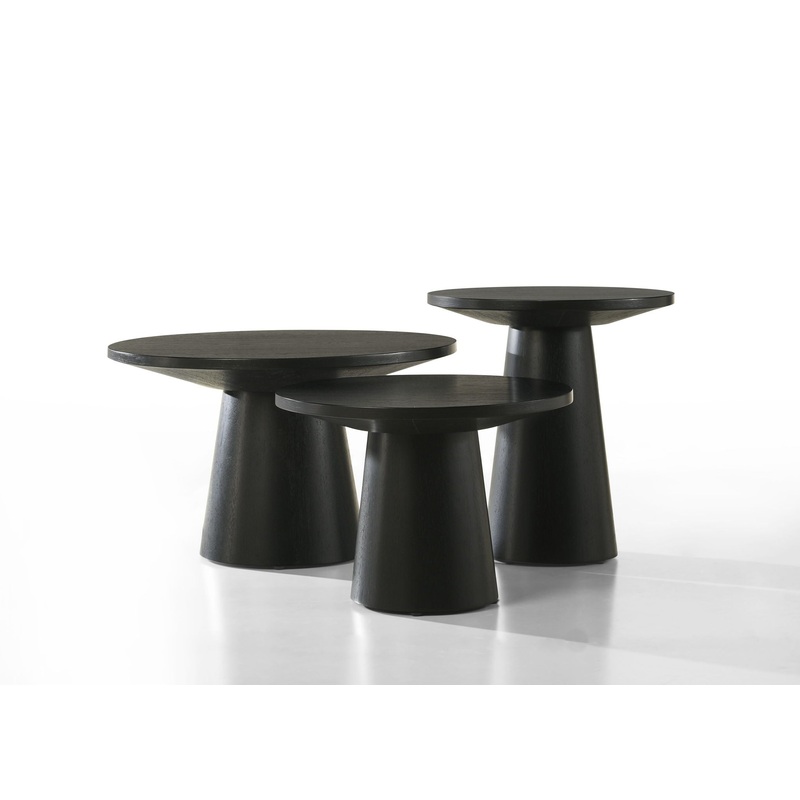 - Elevate your interior with the Jasper 3-Piece Table Set, a harmonious ensemble that effortlessly combines form and function. This set is designed to create a seamless flow of sophistication throughout your living space. Drawing from the captivating natural wood grain, each table in this set embodies a cohesive aesthetic that adds depth and allure to your decor. The intricate textures of the wood grain are beautifully accentuated by the ebony black finish, creating a visual interplay that captivates the eye. The coffee table stands as the centerpiece of the collection, offering a spacious surface for beverages, books, or cherished decor items. The end table provides a functional yet elegant platform for essentials, while the console table offers a versatile solution for entryways, displays, or storage. Elevate your decor with enduring style and a sense of continuity that makes a lasting impression.