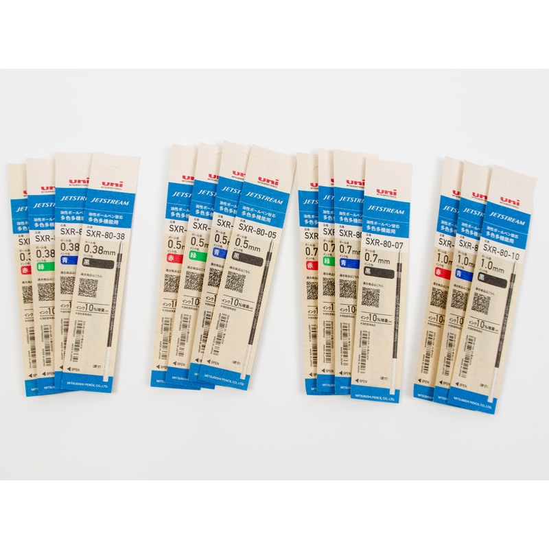 Uni has released the popular SXR-80 refill in environmentally-friendly, paper packaging! Mitsubishi Jetstream Multi Refill in your choice of .38, .5, .7, or 1.0 tip size and Black, Blue, Red, and Green ink colors. (Green ink not available in1.0 mm.) This r