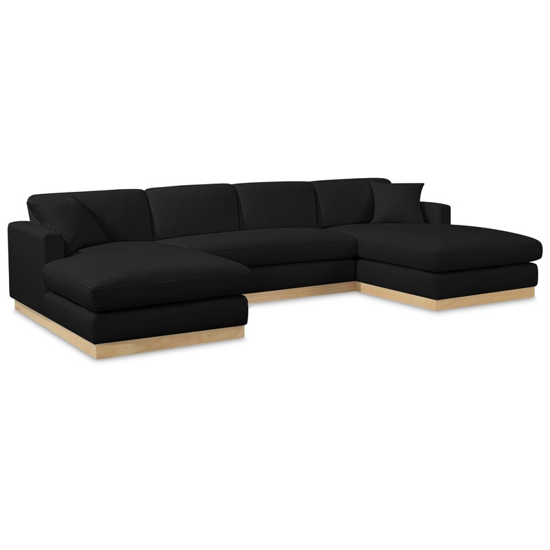 Gather your whole crew for family movie night on this Johanna linen textured fabric sectional sofa. Upholstered in rich linen textured fabric and featuring a natural finish solid wood base, this sectional exudes a mid-century charm that’s both elegant and comfortable. The eucalyptus wood frame provides durability and ensures lasting performance and use, while the plush seat and pillowy back cushions offer a cozy seating experience.