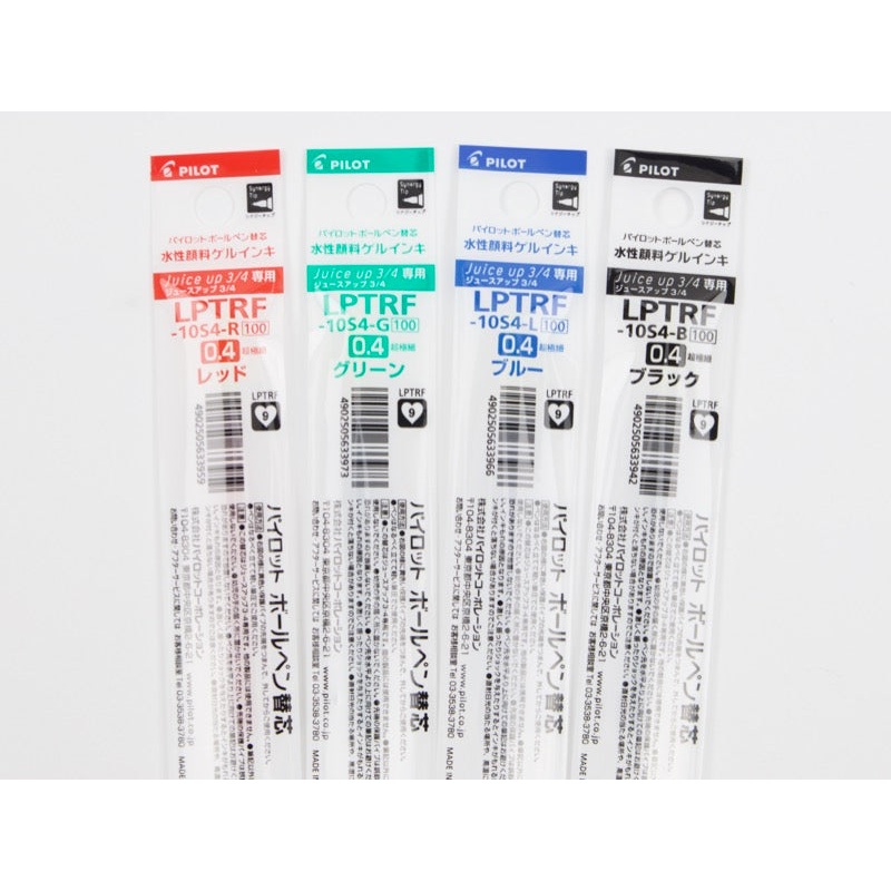 Refills for the Pilot Juice Up 3 and 4 Multis are available in .4mm and in the colors red, blue, green, and black. Juice Up Gel Ink with a synergy tip.4mm tip sizeChoose from red, blue, green, and black
