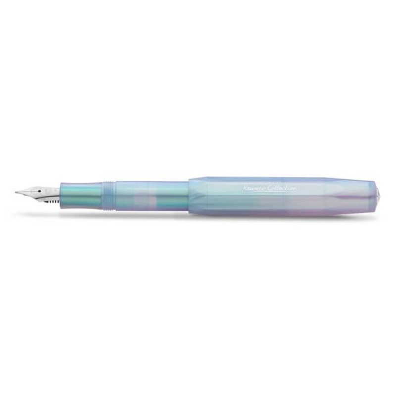 The Kaweco Iridescent Pearl a fountain pen in an unimagined variety of colours: Depending on the viewer’s angle of vision and the incident light, the writing instrument shines in an uniquely shimmering colour scheme. Imitating the optical effect of a pearl, the translucent material of the fountain pen shines in colours ranging from green-bluish to pink.