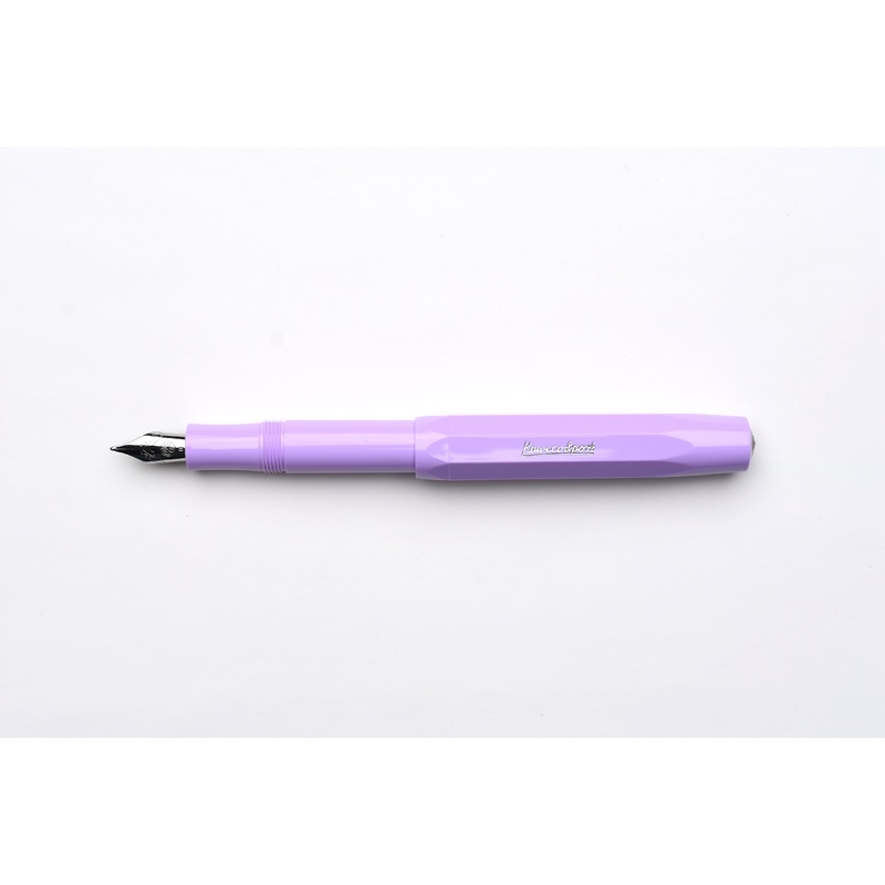 Kaweco Sport Fountain Pen – Collectors Edition – Lavender.Almost identical to theCLASSIC Sport fountain pens, this edition of Collectors Edition features a gentle lavender color with silver detailing.Capped, the pen is about 4 inches long, and when uncapped and writing, with the cap placed on the backside of the pen, the pen is lengthened to be about 5 inches, giving it a comfortablesize and balance in the hand. With Kawecos signature octagonal pen barrel, the fountain pen sits easily in your hand when you are writing and are able to lie flat on a desk without rolling around. In the store, when we are asked to recommend a starter fountain pen, the Kaweco Sport fountain pens are one of the pens we always suggestyou try out.