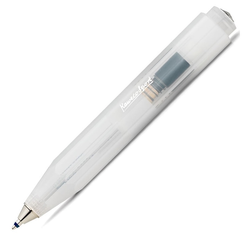 The Kaweco Frosted Sport Ballpoint Pen is presented with a natural coconut colour and an opaque plastic coat showcasing the inner workings of the pen. Although the name of this pen gives off a winter feel, the Frosted Sport Ballpoint Pen is a must have for