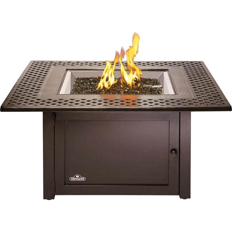 Description (P)Enjoy the luxury and warmth of a fire pit with the ease and security of using natural gas or propane with the Kensington Square Patioflame Table. A topaz glass ember bed reflects the flame's light, creating a comforting glow that you can fur