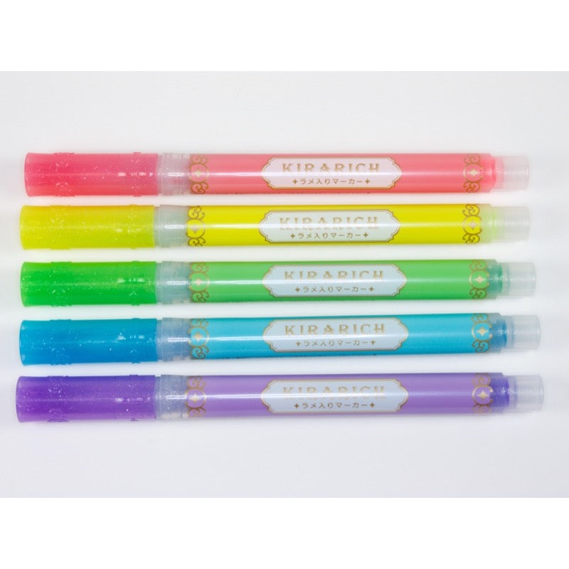 Finely milled glass particles turn an ordinary highlighter into a disco study session. The Kirarich are the first glitter highlighter we've come across. Even the body of this pen is sparkly fun.Water based silver glitter ink in five bright colors: pink, pu