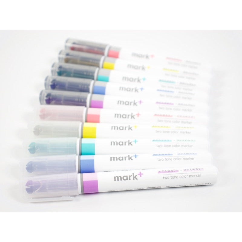 Kokuyo's Mark is a dual-ended highlighter with two highlighter colors at the same end! You can do some efficient color code highlighting with this handy marker. The series includes 5 two-tone colors and 5 highlighters that are colors paired with gray.Pleas