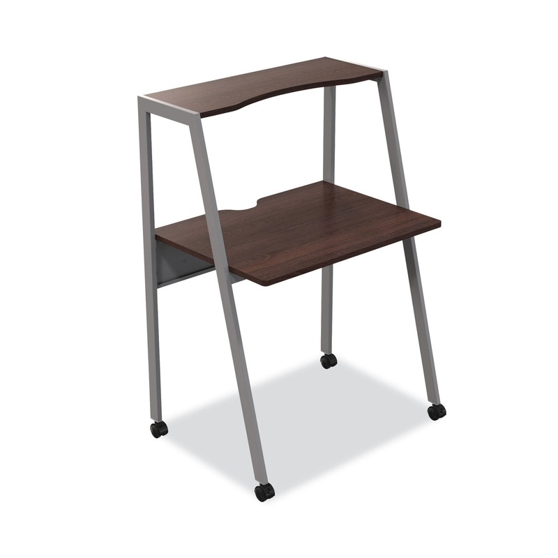 Minimalist two-tier design complements contemporary, modern and traditional decors. Ideal for home offices, dorms, lofts or wherever space is at a premium. Top shelf provides extra storage space. Durable steel frame. Casters for mobility. No tools required for assembly. Series Name: Linea Italia Kompass; Worksurface/Base Color: Mocha; Color Family: Brown; Worksurface Shape: Rectangular.