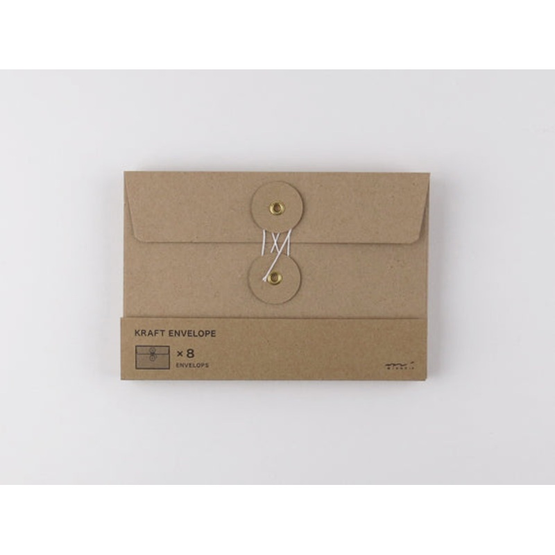 TheTRAVELER'S COMPANY Kraft Envelopes MGrey comein a set of 8 envelopes made from kraft paper.Back in the days when internet and emails didn't exist, these types of envelopes with sealing strings were sent to peoples desks. To some it might seem outdated,