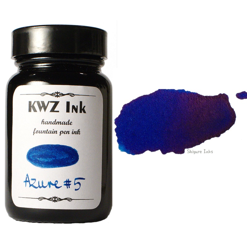 A 60ml bottle of KWZ Azure #4 fountain pen ink. KWZ Azure #4 is a darker, shading blue. KWZ inks are handmade in Poland.Volume: 60mlBottle Material: GlassColor: Blue