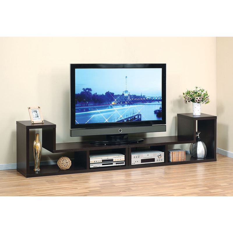 L Shape Geometric TV Stand Two Piece Extendable Media Furniture – Espresso