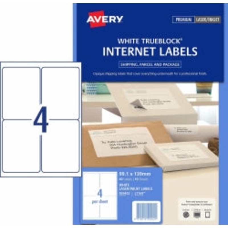 W8555S1XLABEL AVERY L7169 99.1X139MM INTERNET SHIPPING 4UP WHITE PK10 G23308