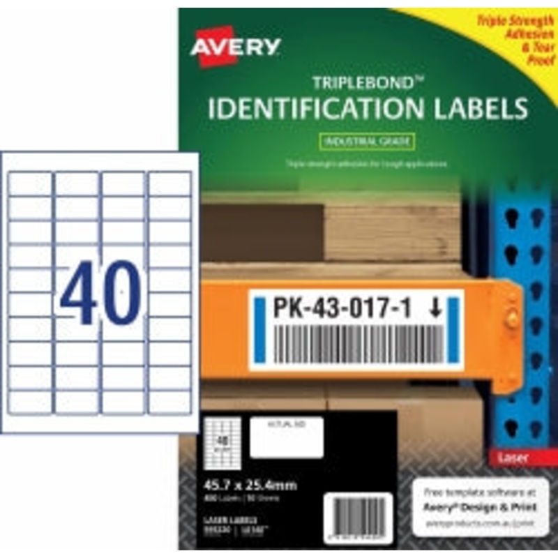 158S787SLABEL AVERY LASER L6140 TRIPLEBOND 45.7X25.4MM 40UP PK10 G42260