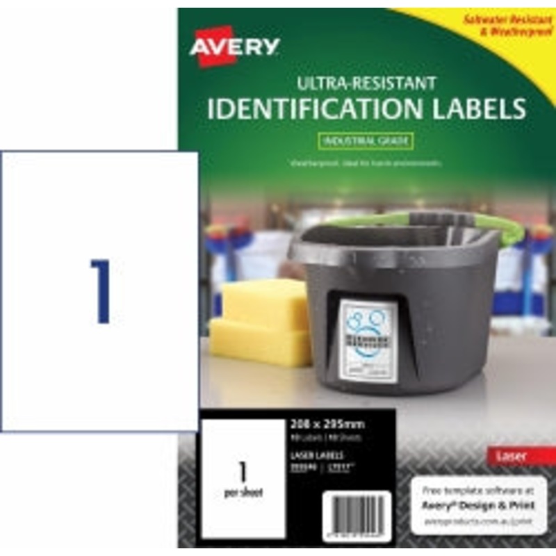 85487XS4LABEL AVERY LASER L7917 ULTRA RESISTANT 208X295MM 1UP PK10 G42267