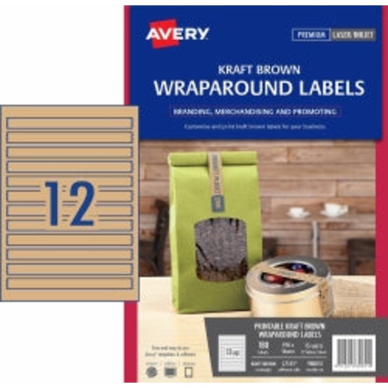 SWW88WX1LABELS AVERY 190X16MM L1745 WRAPAROUND 12UP KRAFT BROWN PK15 G43808