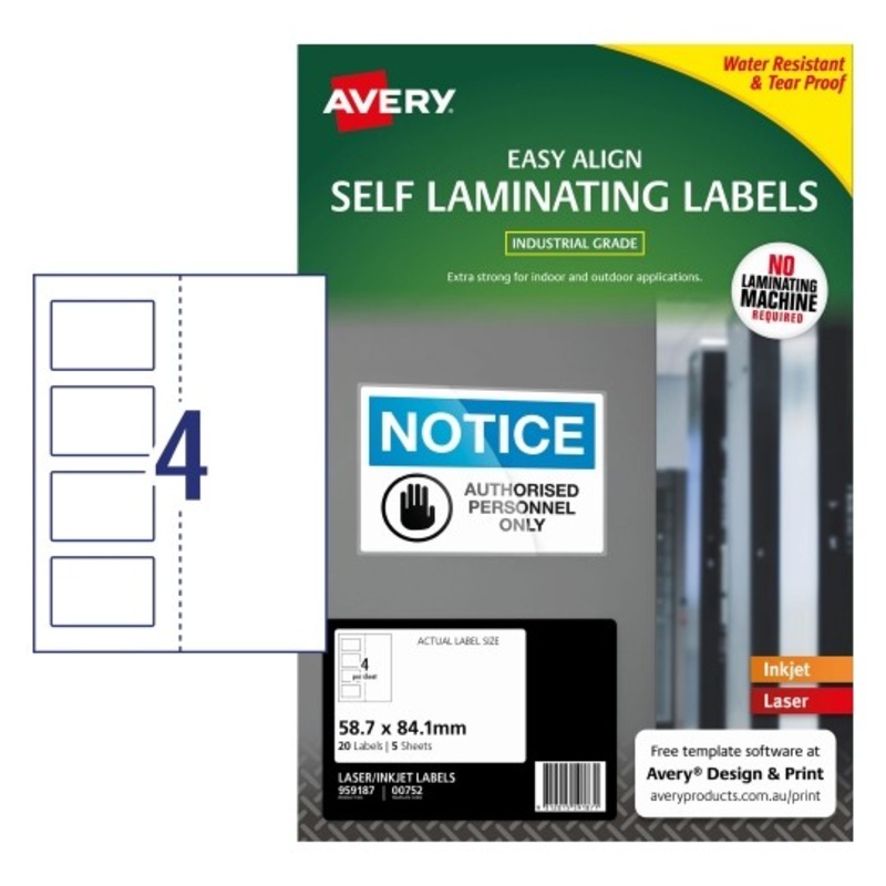 1WW5SS77LABELS AVERY SELF LAMINATING 58.7X84.1MM 4UP PK5 G59165