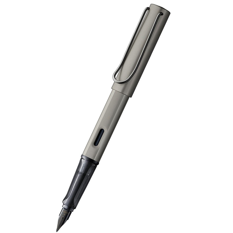New modern sophisticated writing instrument Lamy Lx Ru – Ruthenium Fountain Pen resembles the Al-Star, but with a few subtle upgrades. It is a functional and stylish companion made from feather light aluminum with a refined anodized finish. The pen features a distinctive spring-loaded beautifully finished metal wire-clip and glossy transparent grip. Each pen is fitted with a glossy PVD black laser engraved nib with some subtle design changes. The pen is delivered in gift case made of aluminum anodized in the same colors as the fountain pens.Will accept the LZ24 converter – which is not included.