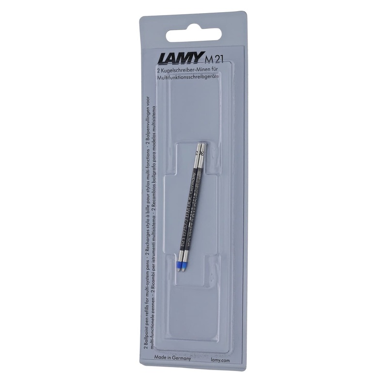 For all multi-system / multi-colour pens and LAMY spirit.Ballpoint M21refills are waterproof for all multi-system/multi-color pens and and the Lamy Spirit.Metal refillwith stainless steel tip in black, blue, red and green. 2 Refills per package. Made in Ge