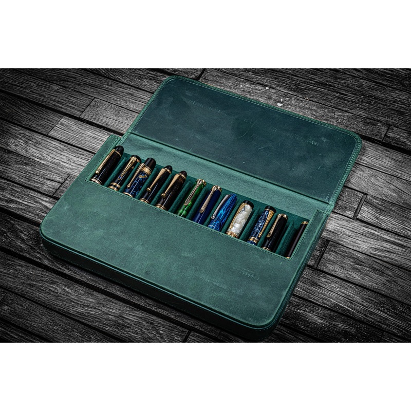 Handmade Leather Magnum Opus 12 Slots Hard Pen Case with Removable Pen Tray