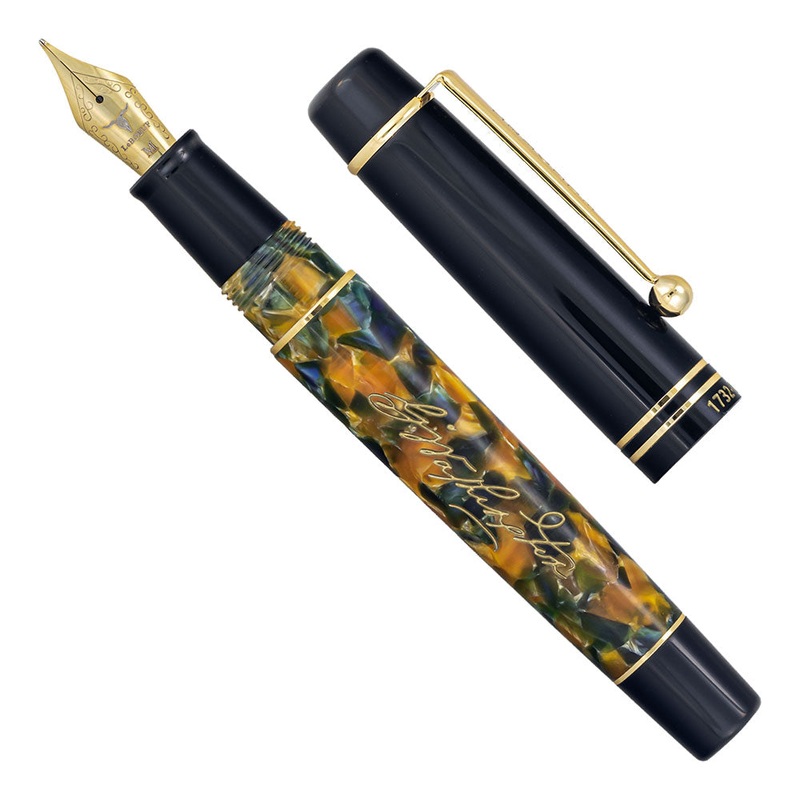 The LeBoeuf George Washington Limited Edition features a gorgeous Military Blue/Buff Gold Acrylic barrel specially chosen to match the Continental army uniform worn by Washington during the War for Independence. Each Barrel is engraved with George Washingtons famous signature in gold fill and a gold-plated embossed coin featuring Washingtons portrait has been carefully placed atop each pen cap. A gold-plated clip and band enhance the elegance of this very special pen.