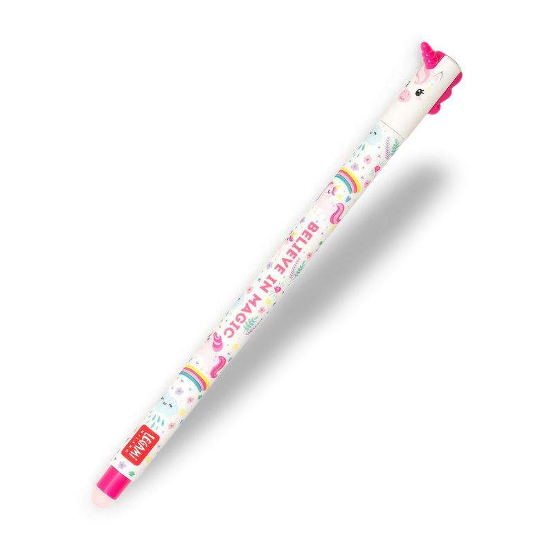 About Legami Erasable Rollerball Pen - Unicorn The Legami erasable rollerball pen is a fun styled pen designed for the young writer. This unique product allows you to cleanly erase, delete and rewrite - all with the same pen. Simply rub out your mistakes w