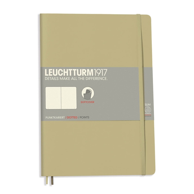About Leuchtturm1917 Composition (B5) Softcover Notebook - Sand Slim and flexible and with all the usual details including gusseted pocket inside the back cover, contents page, numbered pages, space on the front and spine for labelling, thread stitching wi