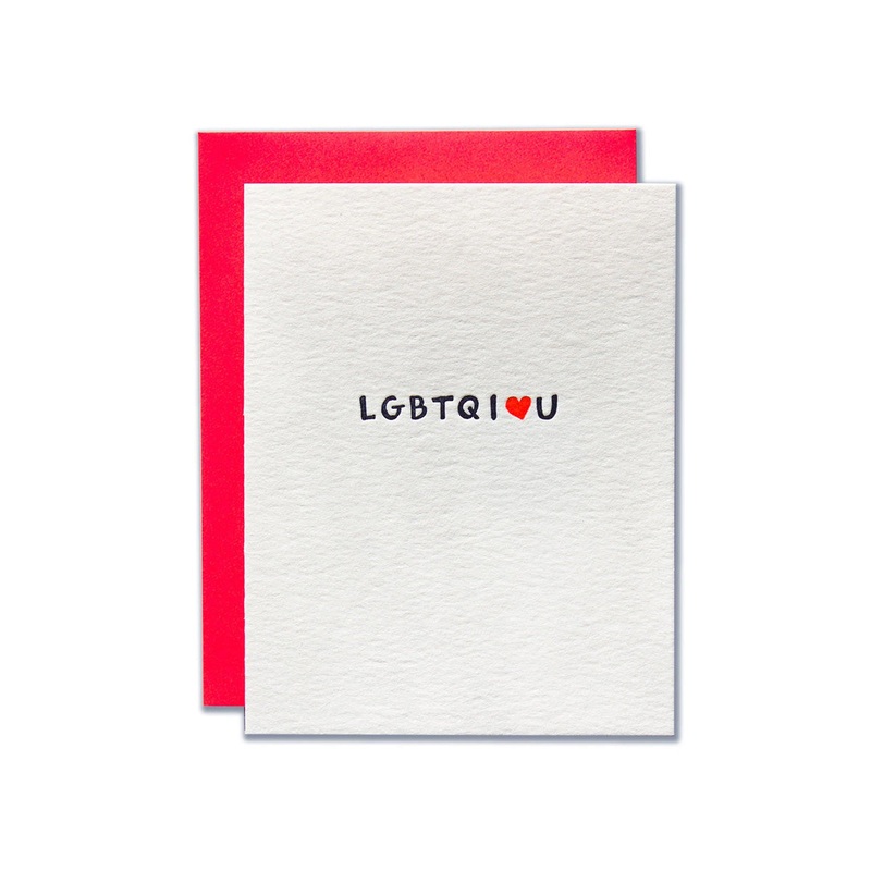 Whether you describe yourself using any of the terms in the acronym or not, the language of love is universal.Size A2blank interiorneon envelope.Hand-drawn and letterpress printed in the USA!