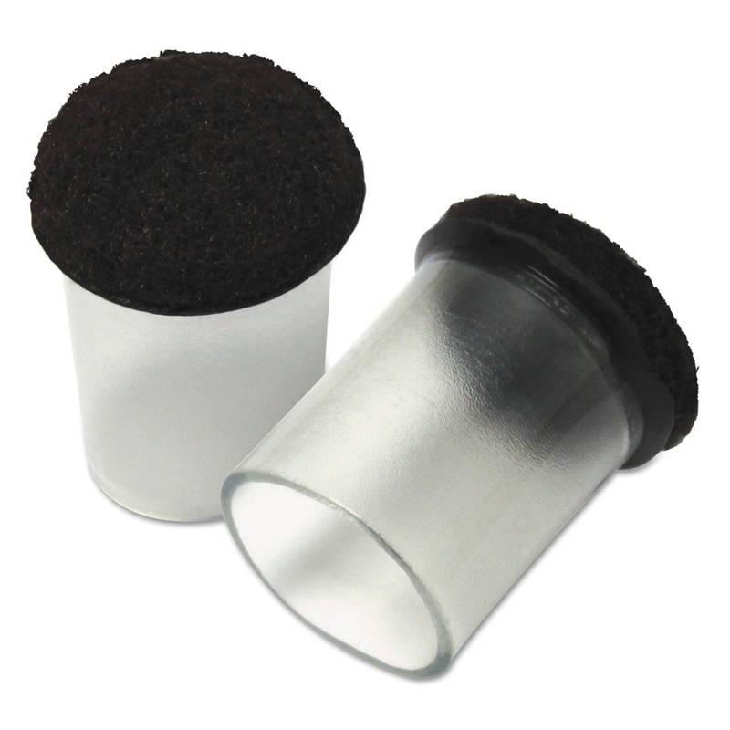 Felt bottoms protect floor surfaces, from scratches and scrapes, covers rough furniture bottoms for smooth, effortless movement. Cushioned felt tip holds stronger and lasts longer than standard felt. Slips on easily, no adhesives, nails or tools required. Recommended for hard floor surfaces. SmallFits 0.88″ to 1.06″ round legs or 0.75″ square legs. Color: Clear/Gray; Color Family: Clear; Application: Chairs; Tables; Material(s): Felt; Plastic.