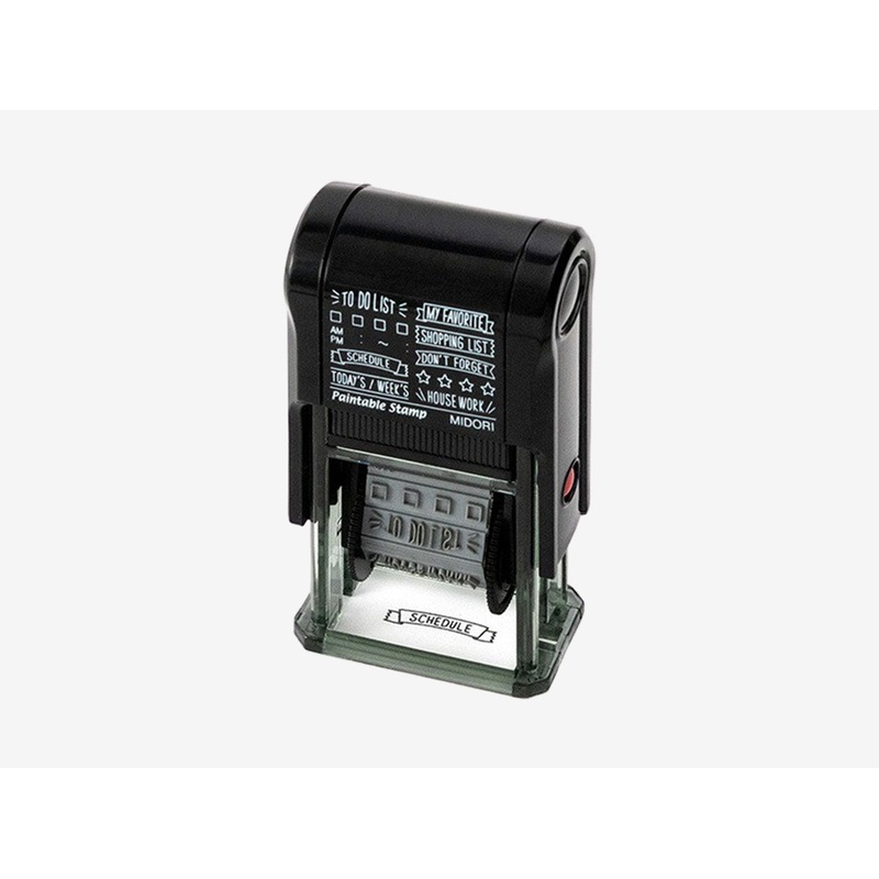 The Midori ListPre-Inked Rotating Stampis a self-inking stamp and allows 1000 prints. The ink is paintable, so you can color and paint the stamp as you like. It features 12 individual list stamps, fromto-do banners to lists, bullets and check boxes