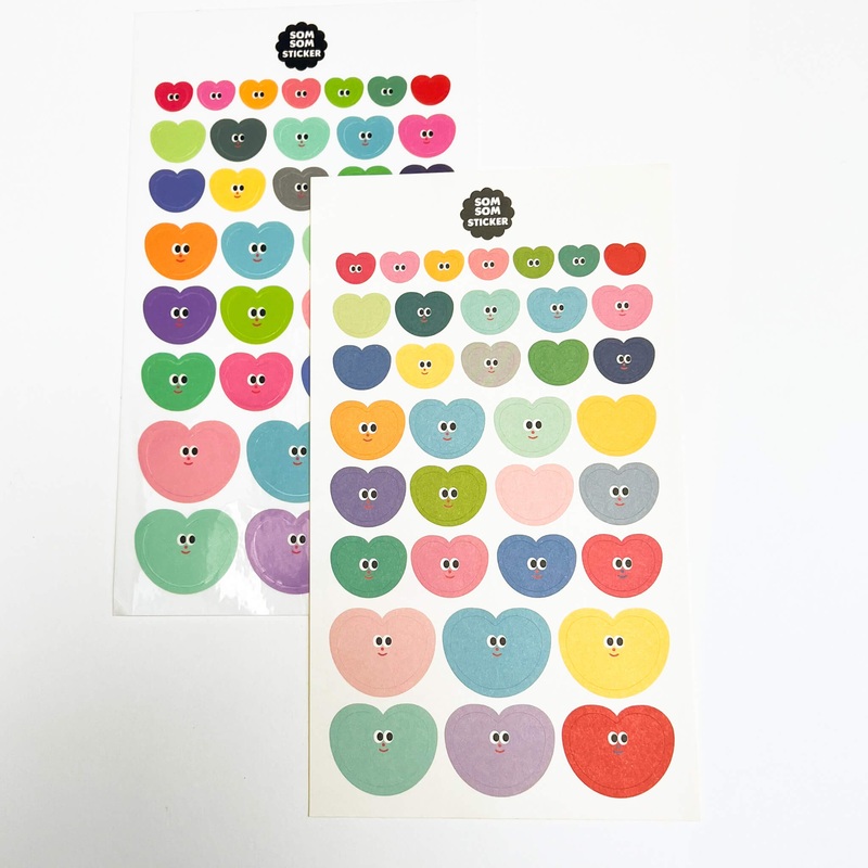 Livework's Som Som Stickers are the perfect accompaniment for multiple creative projects. The Heart sticker set consists of two sheets of assorted, vibrant stickers, with one being made of vinyl for special adornments and the other made of paper. Perfect f