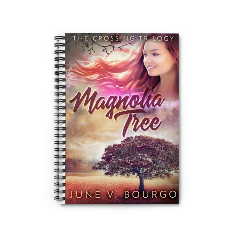 Shopping lists, school notes or poems – this 118 page spiral notebook with ruled line paper is a perfect companion in everyday life. The cover art in this spiral notebook is from June V. Bourgo’s book, Magnolia Tree.