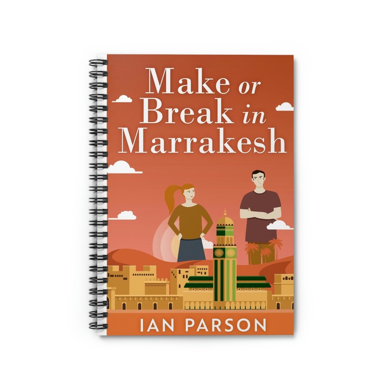 Shopping lists, school notes or poems - this 118 page spiral notebook with ruled line paper is a perfect companion in everyday life. The cover art in this spiral notebook is from Ian Parson's book, Make Or Break In Marrakesh.
