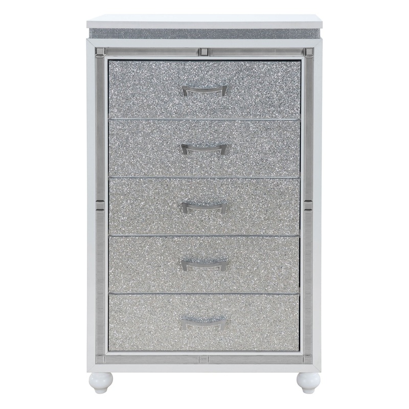 - Stylish Design: The Maloise White Chest showcases a contemporary glam style, featuring crystal crushed drawer fronts and mirrored accents that add a touch of elegance to any bedroom setting.