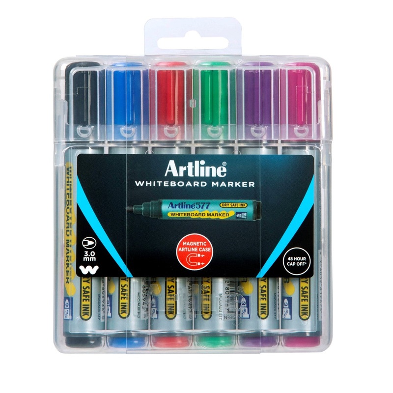 W171711SMARKER WHITEBOARD ARTLINE 577 3MM BULLET NIB HARD CASE ASST PK6 G71579