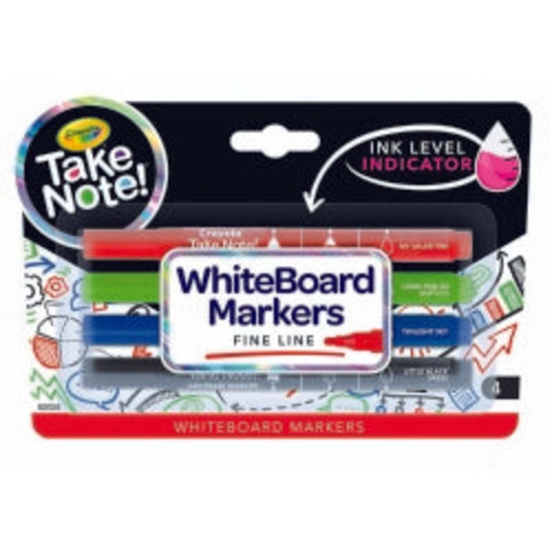 MARKER WHITEBOARD CRAYOLA TAKE NOTE BULLET TIP ASST PK4 G49611