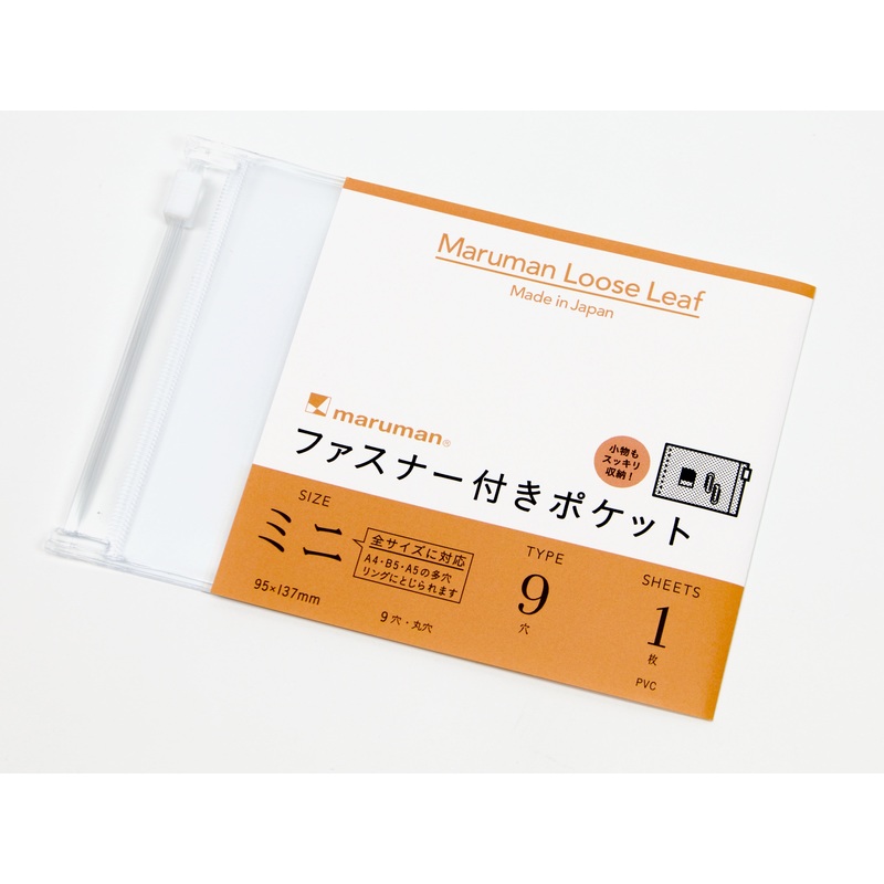 These zip pocket refills fit the Mini Session Binder and provide you with a way to include bits like paper clips and page flags in your binder. The Maruman Mini Session binder is a handy "one-hand" size perfect for carrying all the essential points! You ca